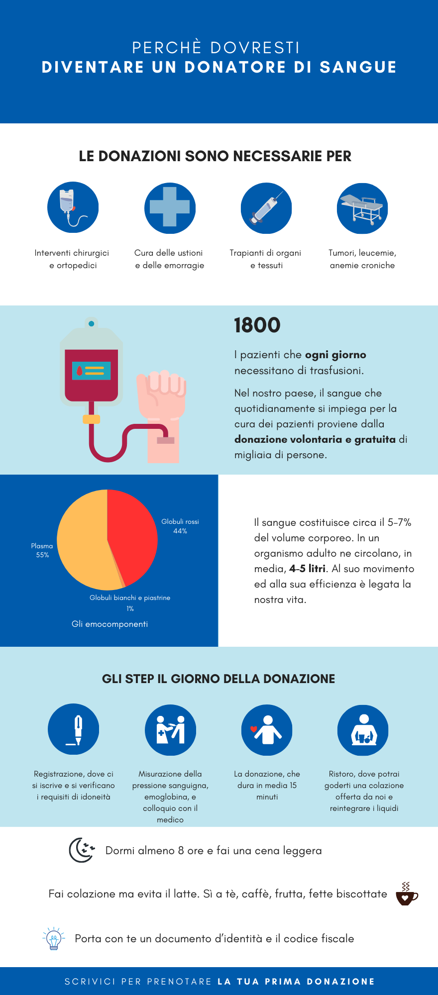 Contattaci per prenotare la tua prossima donazione (clicca sull’icona di WhatsApp, oppure scrivici all’indirizzo info@avisfrascati.it), i nostri volontari saranno felici di aiutarti.